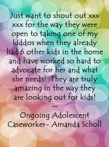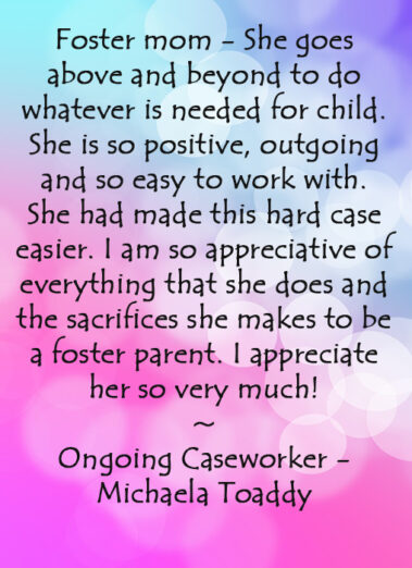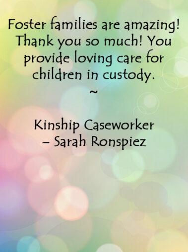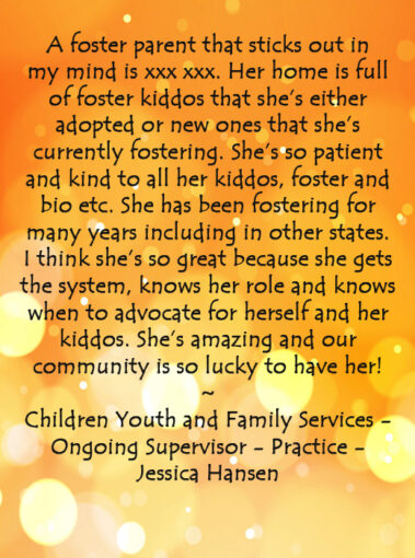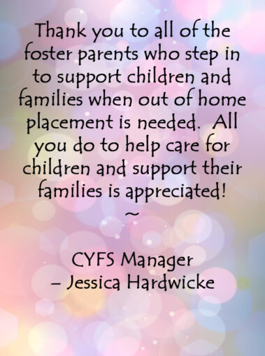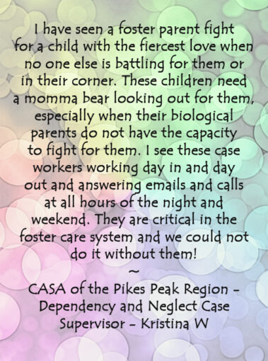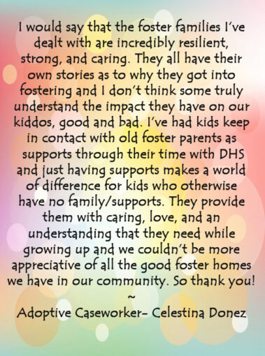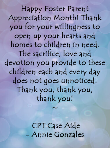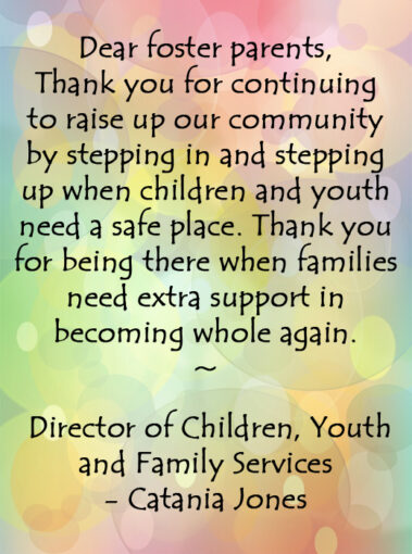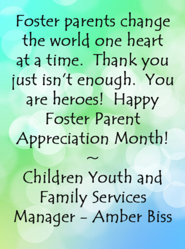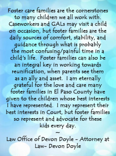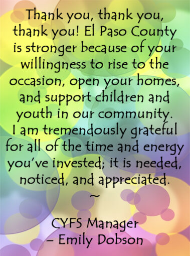 The immeasurable and ongoing gifts of time and caring given by foster families in El Paso County are greatly appreciated and deserve public thanks.